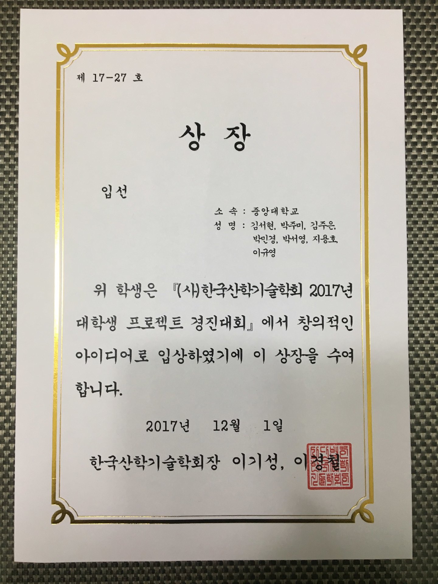 수상자 명단 : http://www.kais99.org/event/domestic/read.kais?page=1&seq=1420&id=79223284-c1ec-45aa-8652-136aef0918e2